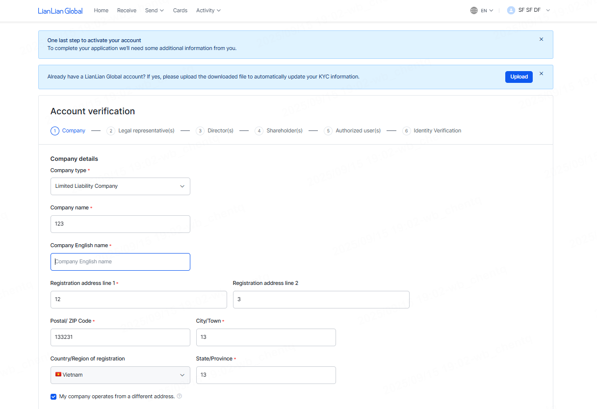Step 6: Fill in the information to complete the LianLian Global account creation: