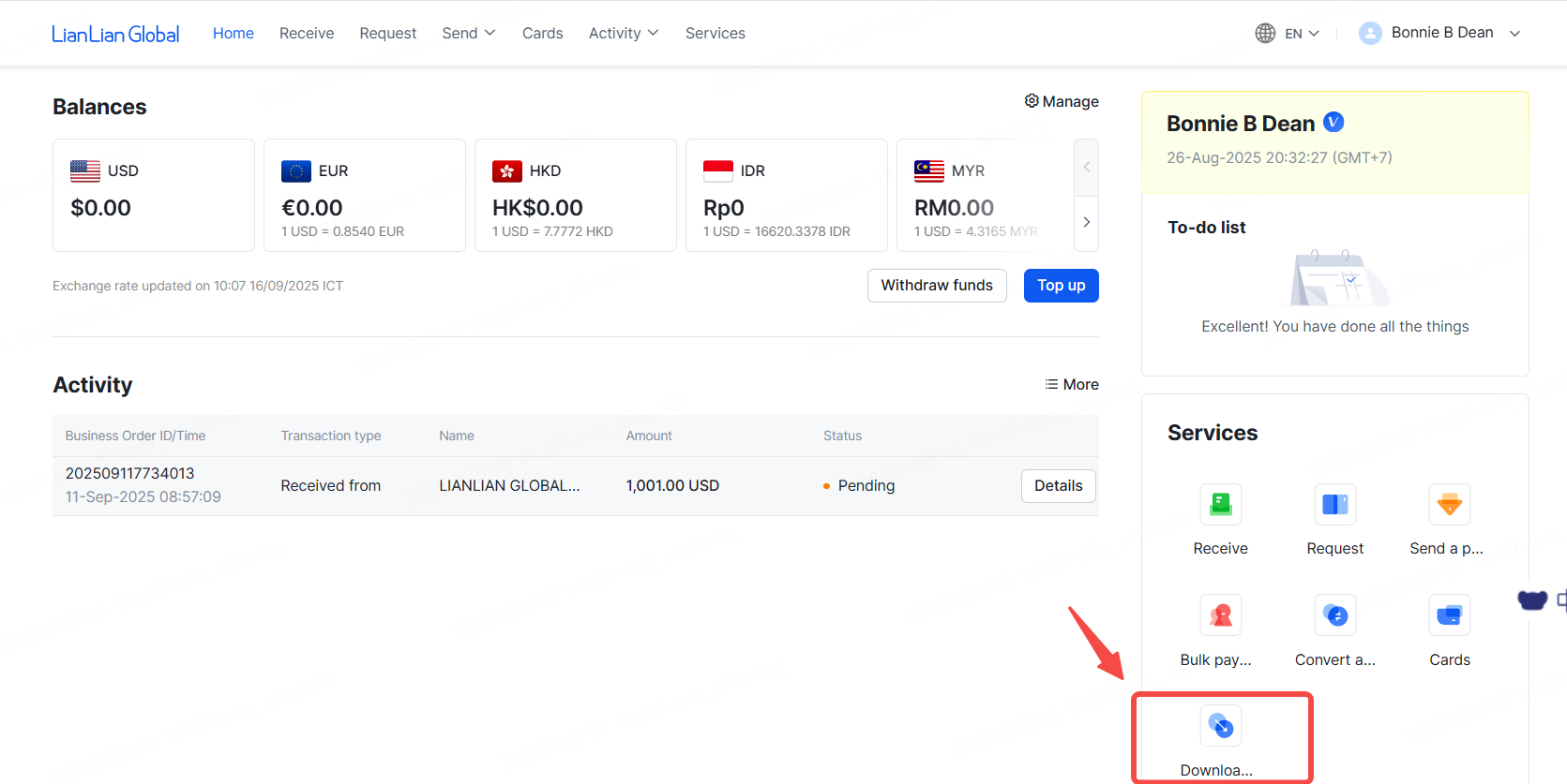 Step 6: Manage cash flow in the LianLian wallet.