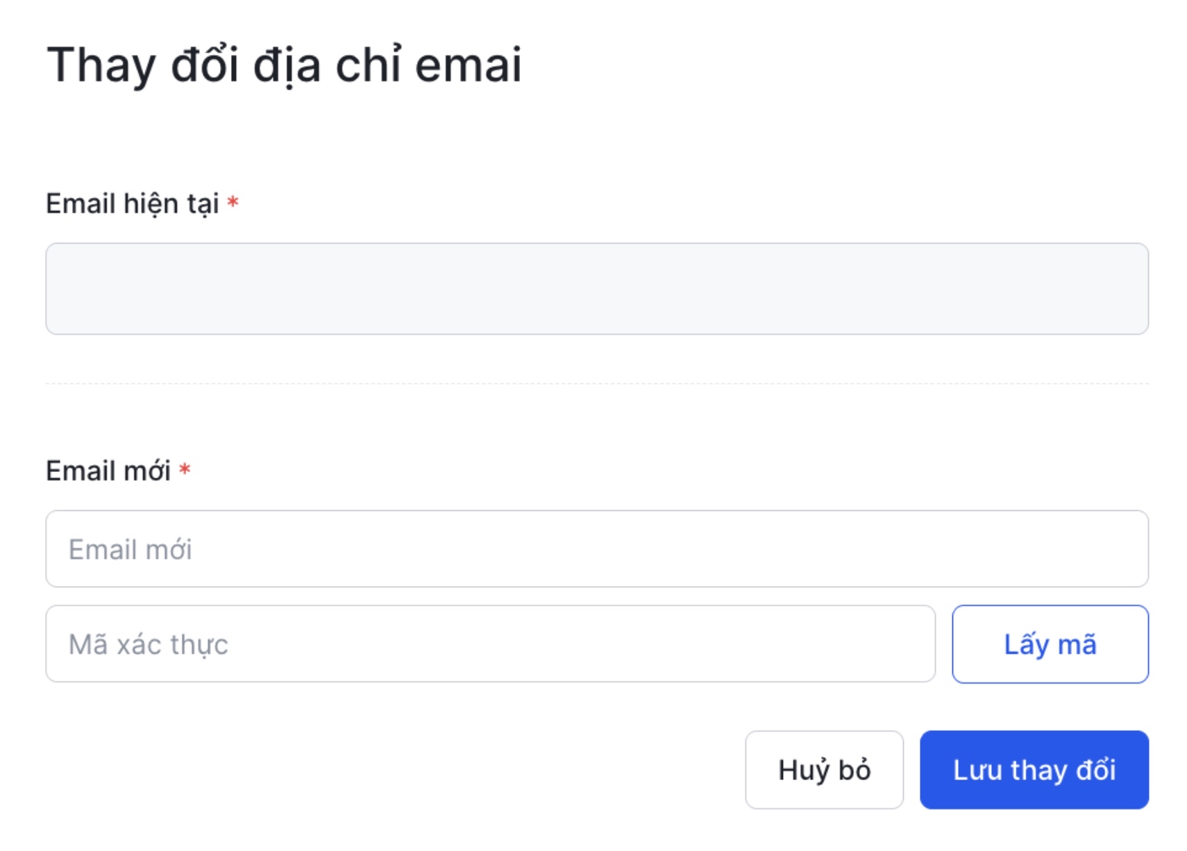 To change the 'Email', you select 'Change' next to the 'Email address' section. After entering the new Email address, please enter the verification code sent to the new Email to complete this change.